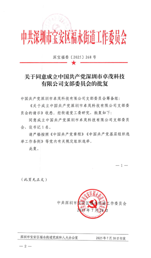 热烈祝贺中共深圳市卓茂科技有限公司支部委员会成立啦!