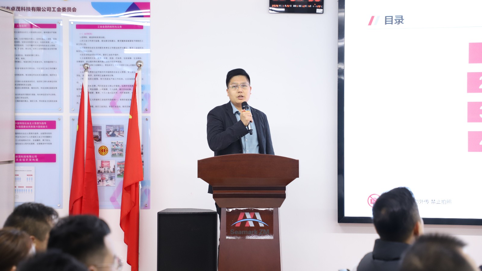 研发中心发布各产品线年度成果与新品规划,运营中心、技术支持等协同部门联动赋能;宣讲环节后,现场开展互动答疑,凝聚共识。