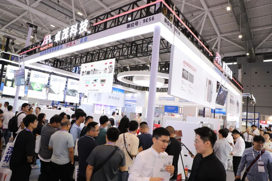 在展台现场,卓茂科技针对电子制造智能工厂带来了全场景应用解决方案。SMT整线检测解决方案:3D SPI 3100锡膏检查机、2D AOI S3020检查机、3D AOI S3030、检查机及高速CT型X射线全自动在线检测设备AXI9000。